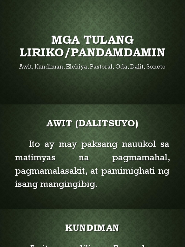 Mga Tulang Liriko At Uri Ng Maikling Kwento