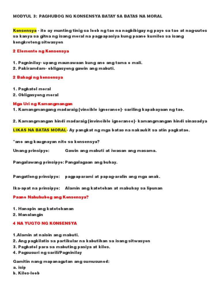 NA ITUTURING KO BILANG MAY PINAKAMATAAS NA HALAGA ANG TAO. Start studying ESP- MODYUL 6 KONSENSIYA. Ang likas na batas moral ay ang isang batas na ipinagkaloob sa isang indibidwal mula pa ng siya ay isinilang.