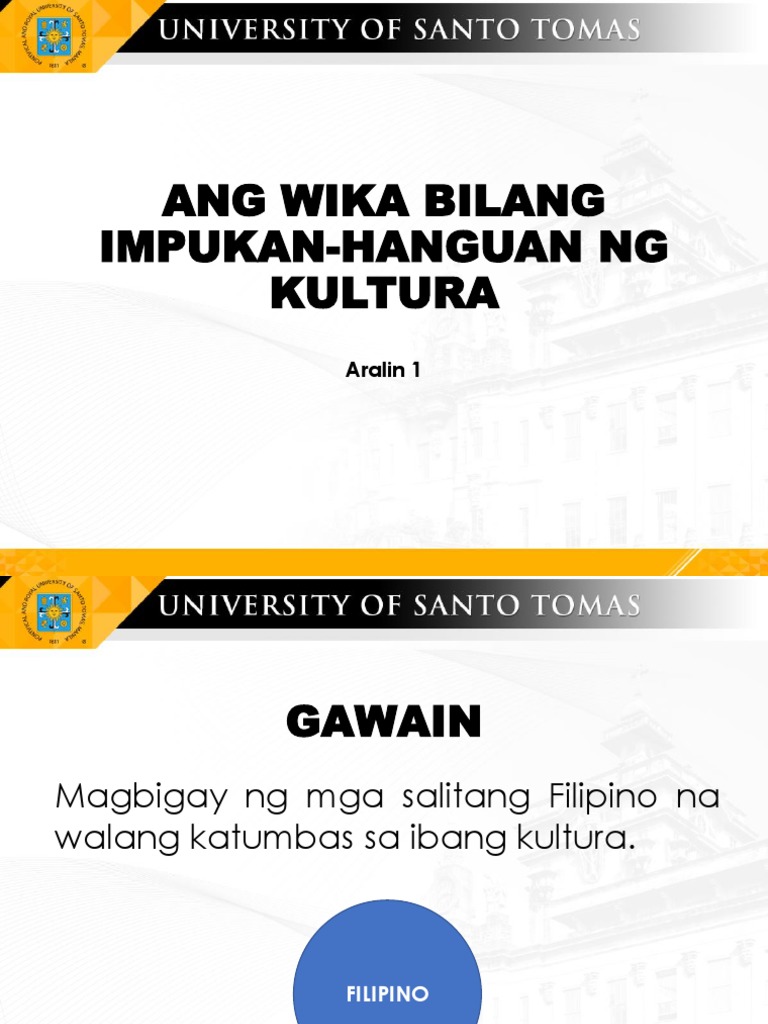 Aralin 1 Ang Wikang Filipino Bilang Impukan Hanguan Ng Kultura Copy Pptx