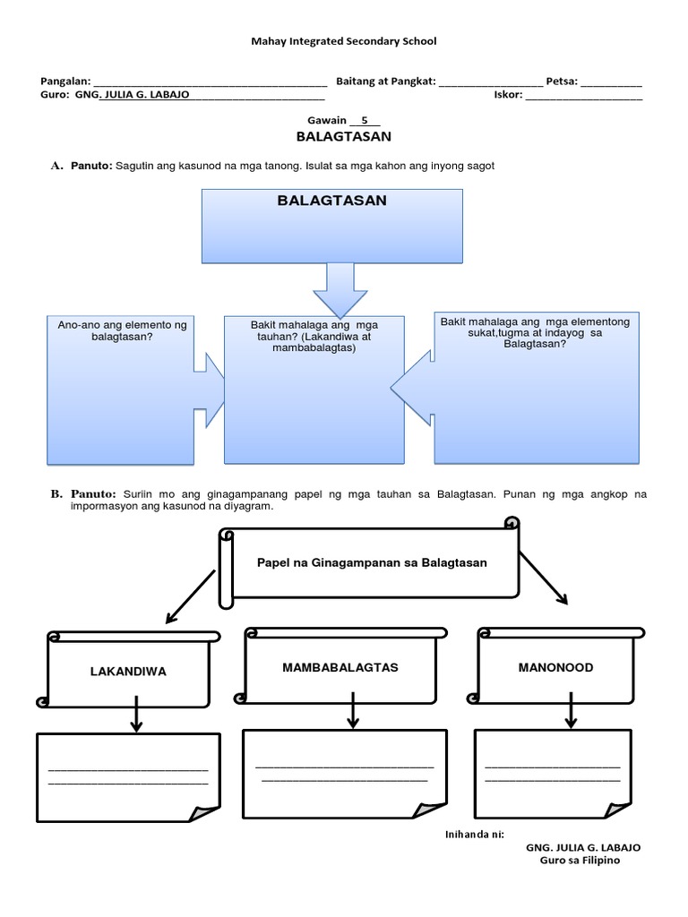 Mga papel na ginagampanan ng lakandiwa sa balagtasan. Gawin ito sa sagutang papel. Punan ng mga angkop na impormasyon ang kasunod na diyagram. Anu ang balagtasan ng ilokano.
