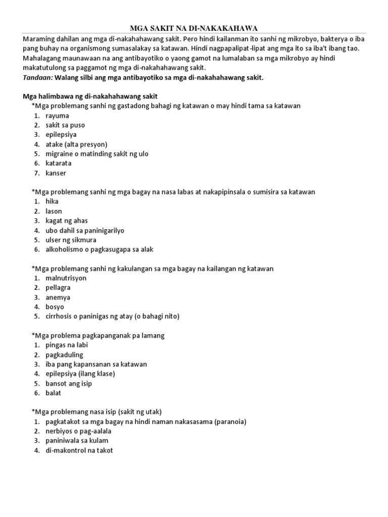 Halimbawa Ng Mga Sakit Na Hindi Nakakahawa